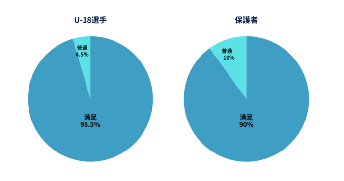 授業後に実施したアンケートでは、U-18選手の95.7%、保護者の90.0%が授業を「良かった(満足・大変満足)」と評価しました。